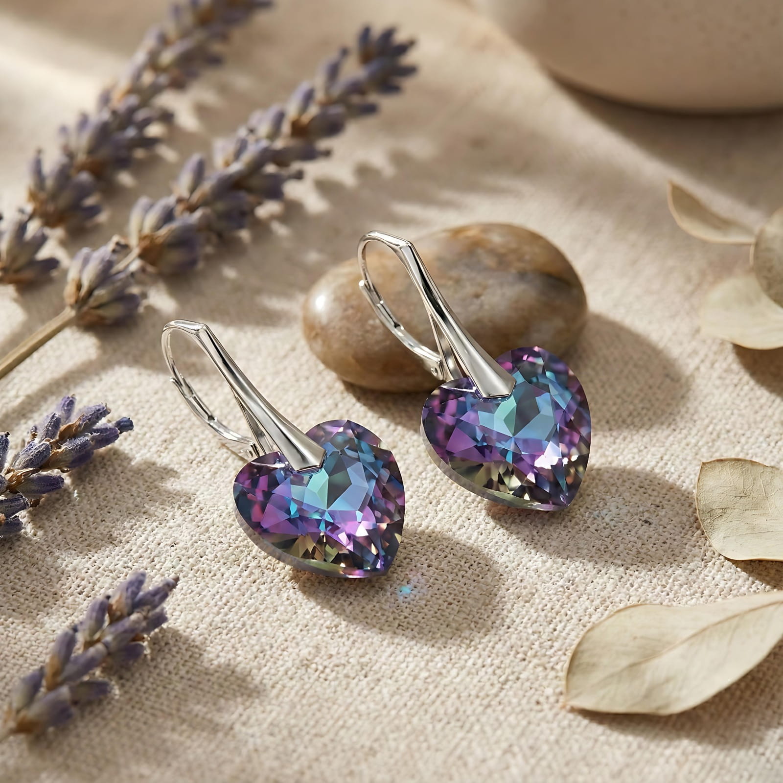 Kolczyki Srebrne 925 Serce Kryształ Vitrail Light