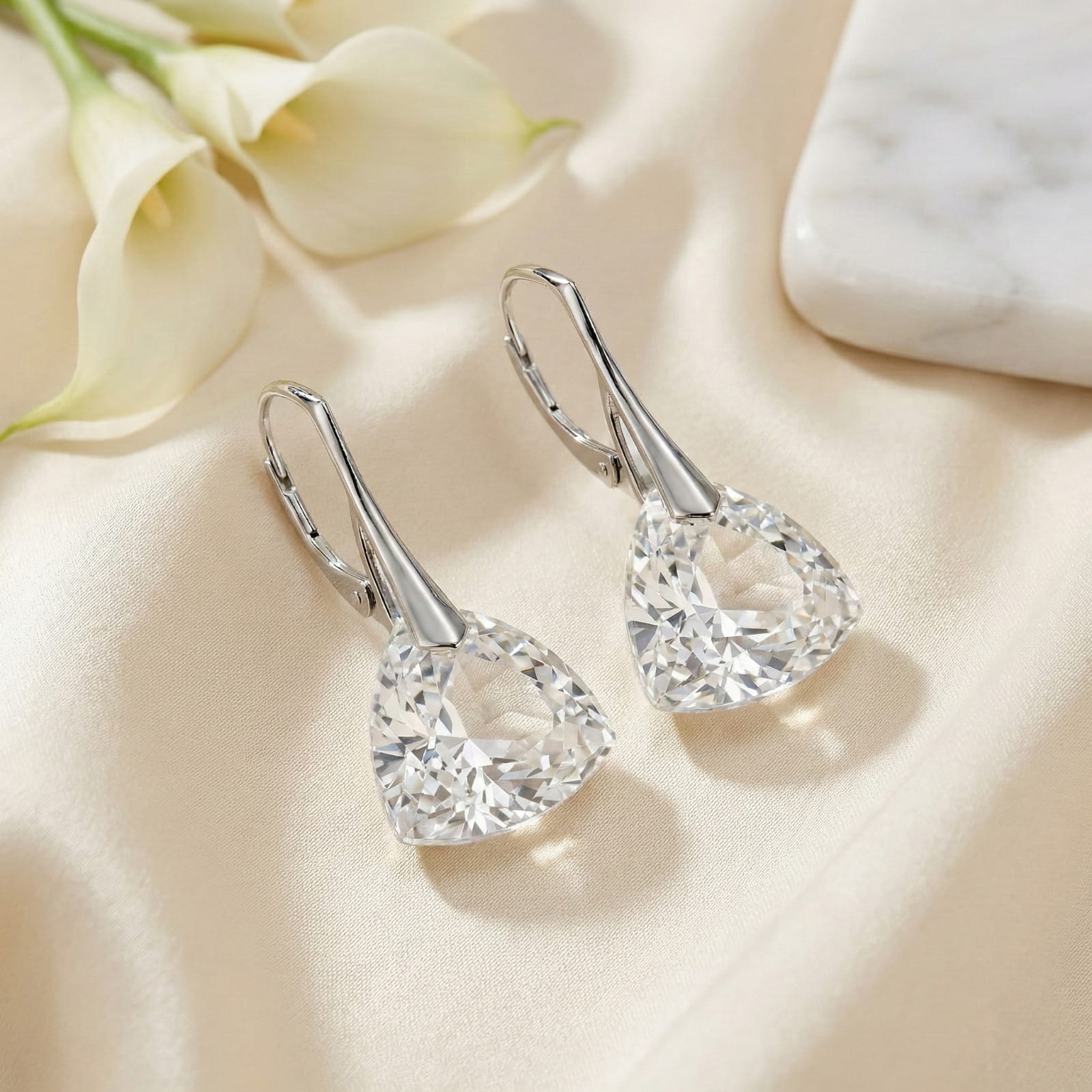 Kolczyki Srebrne 925 Trójkąty z Kryształem Crystal