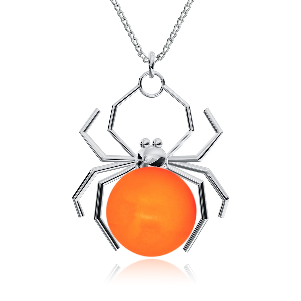 Naszyjnik Pająk Srebrny Wisiorek 925 z Perłą Neon Orange