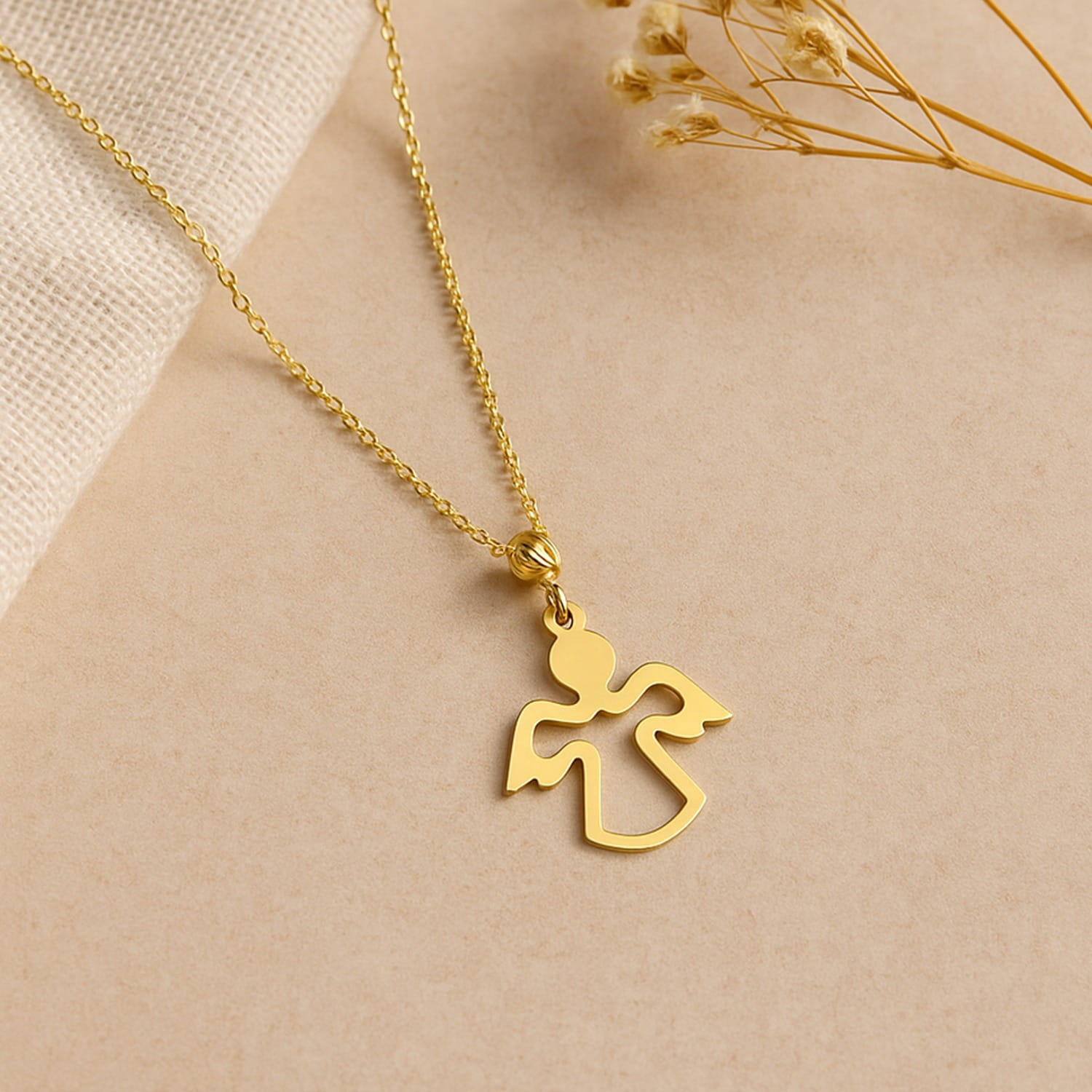 • Złoty naszyjnik z zawieszką w kształcie anioła to wyjątkowa biżuteria, która łączy w sobie elegancję i lekkość formy. Wykonany ze złota próby 585, zachwyca szlachetnym blaskiem oraz minimalistycznym wzorem, który sprawia, że całość prezentuje się niezwykle nowocześnie. Symbol anioła kojarzony jest z opieką i harmonią, co nadaje naszyjnikowi dodatkowego znaczenia, czyniąc go nie tylko ozdobą, ale także wyjątkowym amuletem.