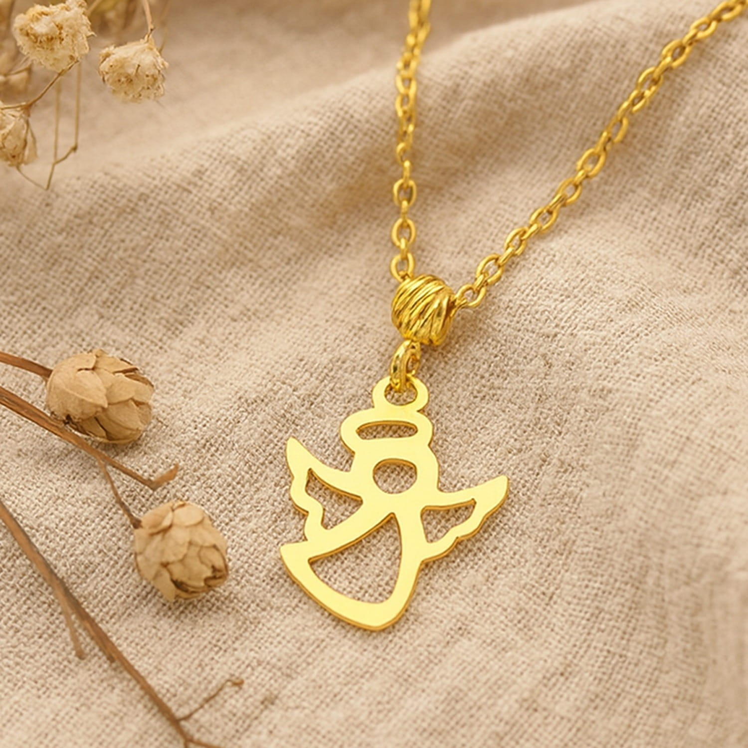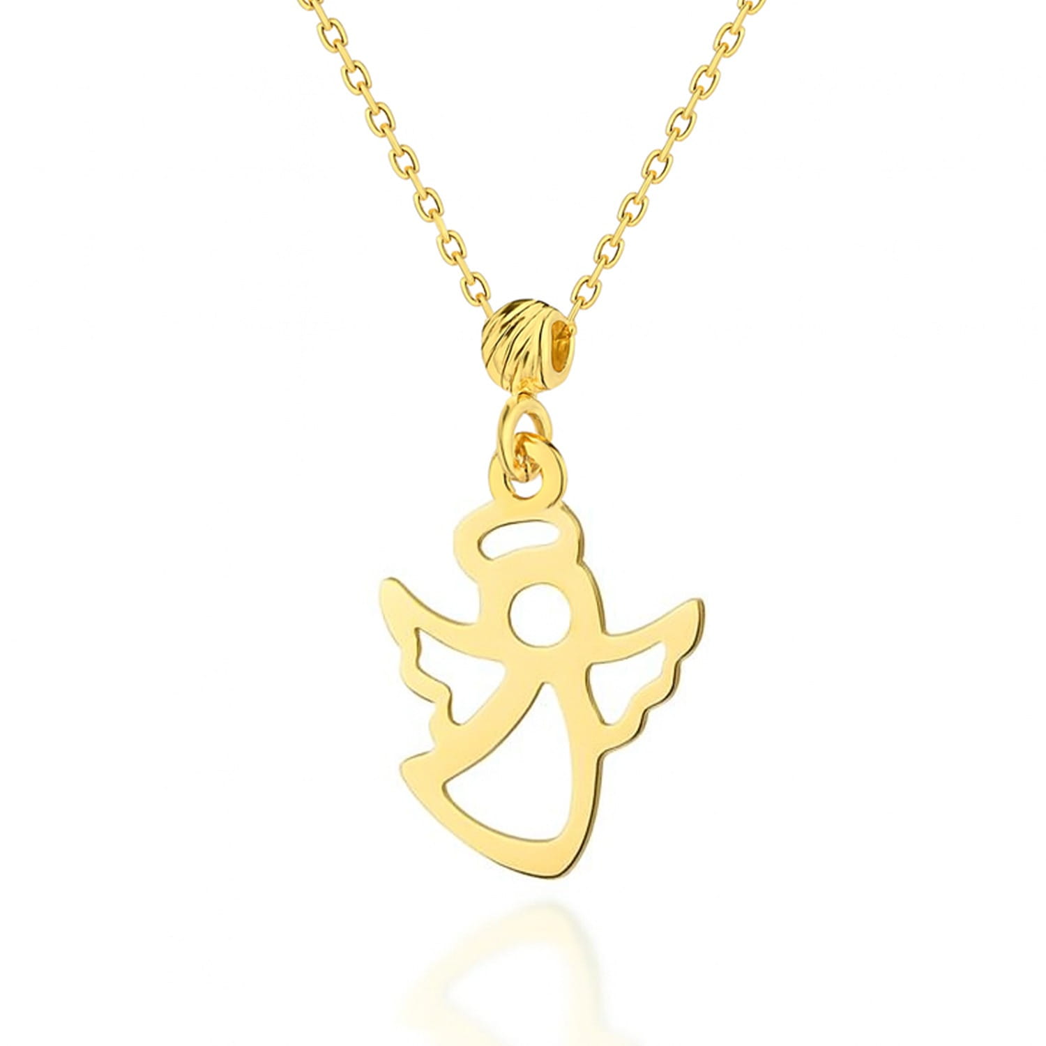 • Złoty naszyjnik z zawieszką w kształcie aniołka to wyjątkowa biżuteria złota, która łączy w sobie lekkość, elegancję i symboliczny charakter. Wykonany ze złota próby 585, zachwyca blaskiem oraz starannym wykończeniem. Zawieszka przedstawiająca anioła została uzupełniona diamentowaną kulką, która pięknie odbija światło, dodając całości wyjątkowego uroku i subtelnego połysku.