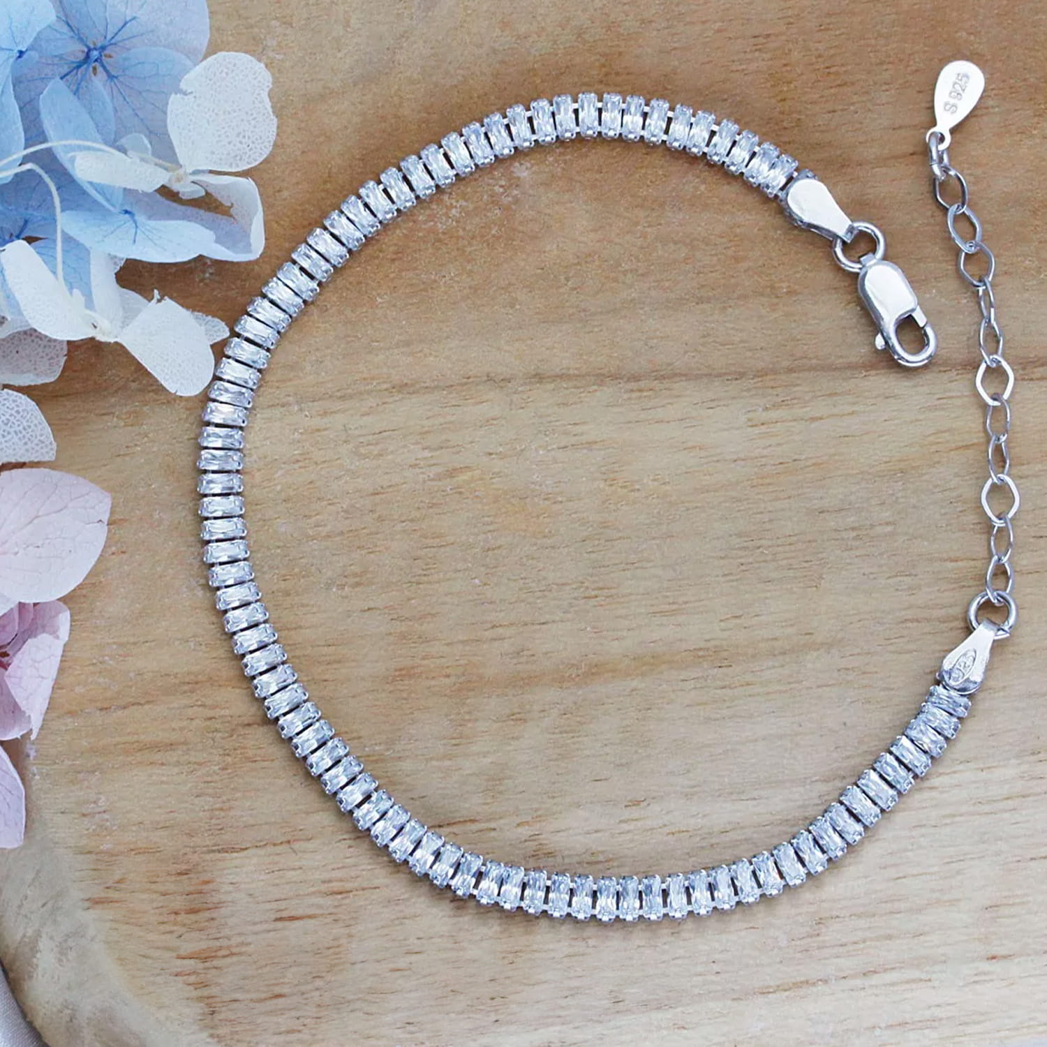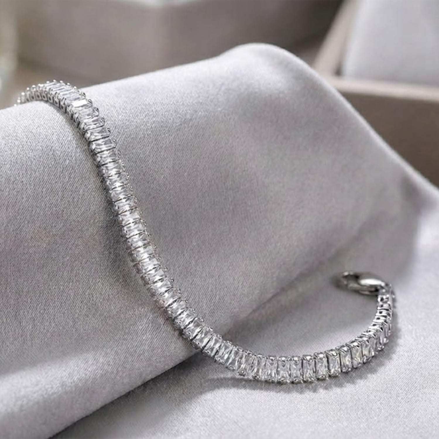 Srebrna Bransoletka 925 z Prostokątnymi Cyrkoniami