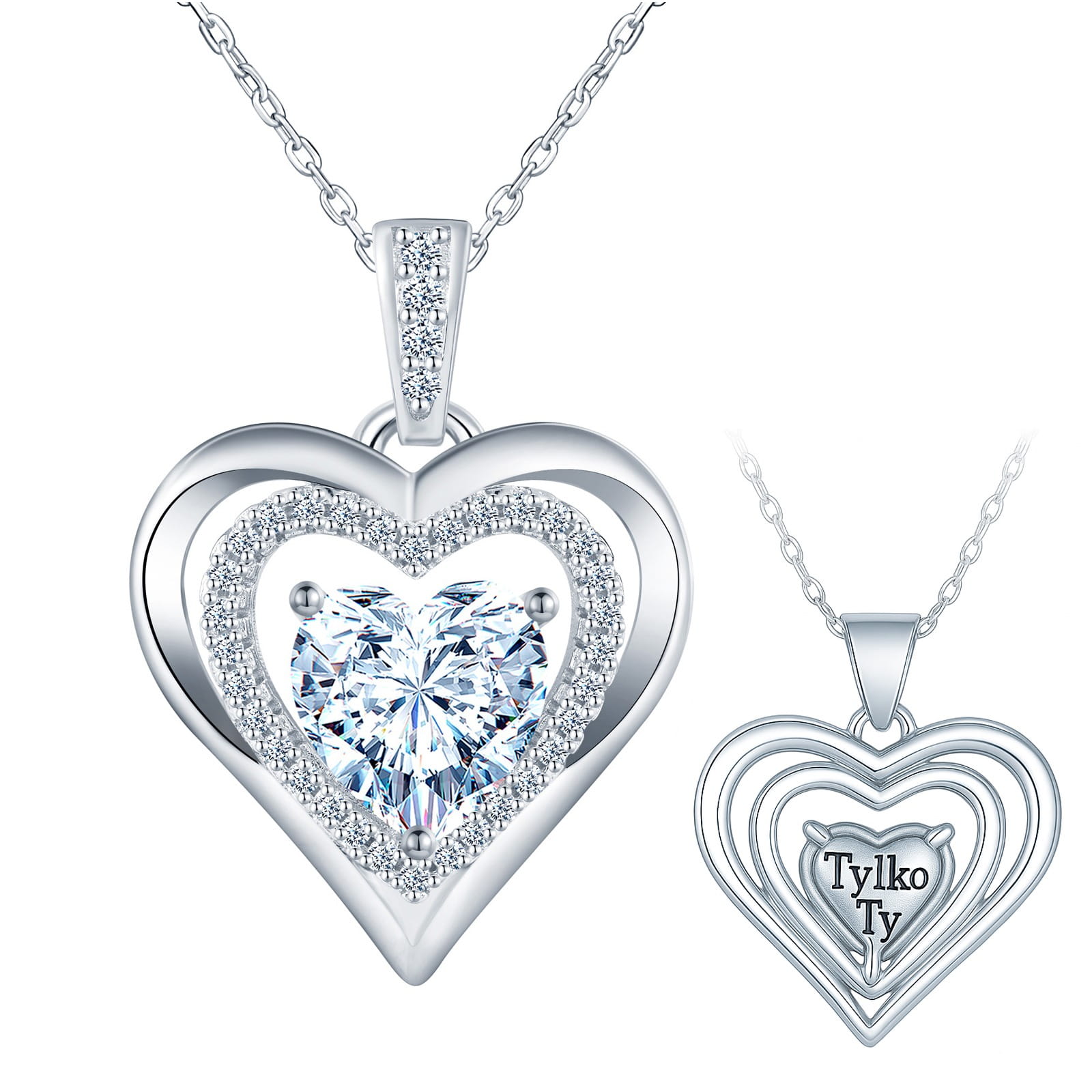 Srebrny Naszyjnik Serce z Białym Kryształem i Cyrkoniami Grawer „Tylko Ty”