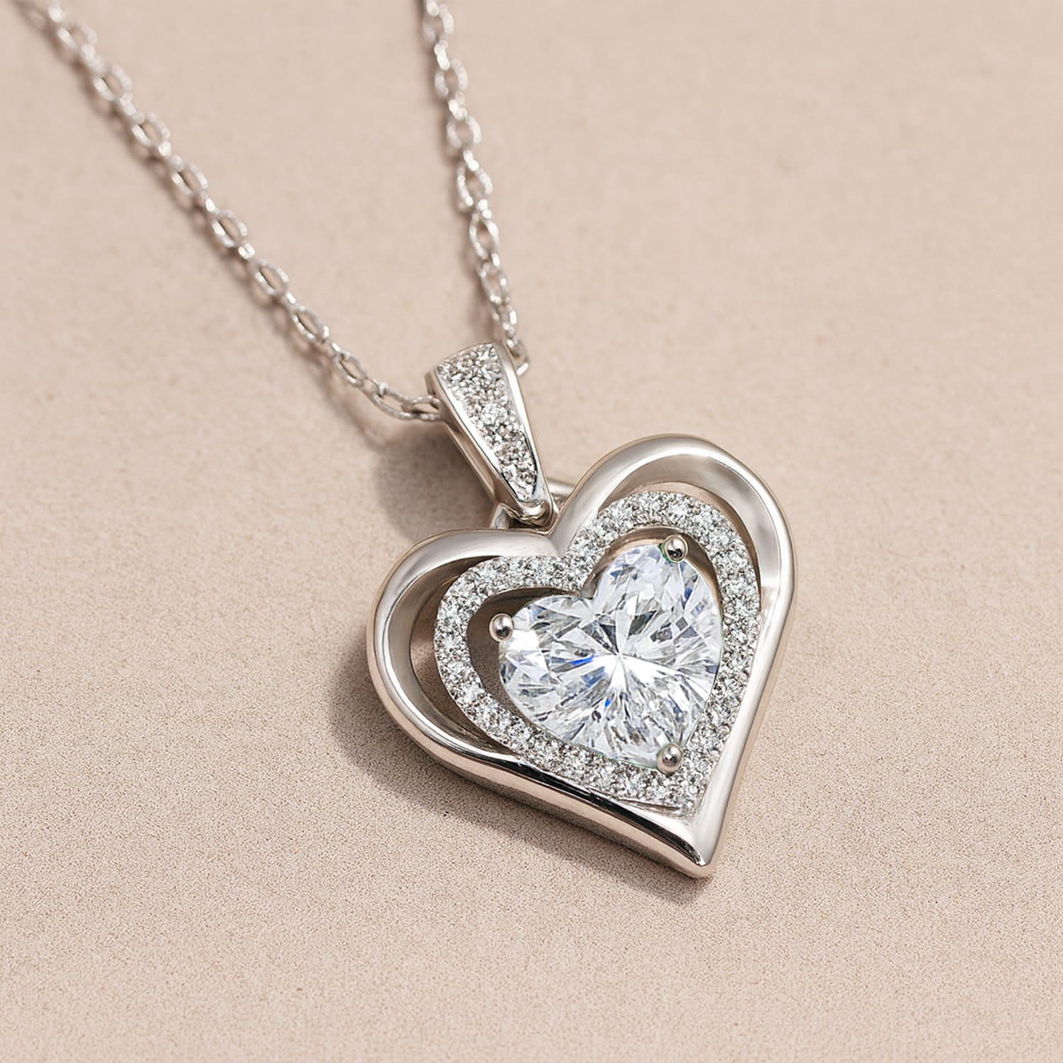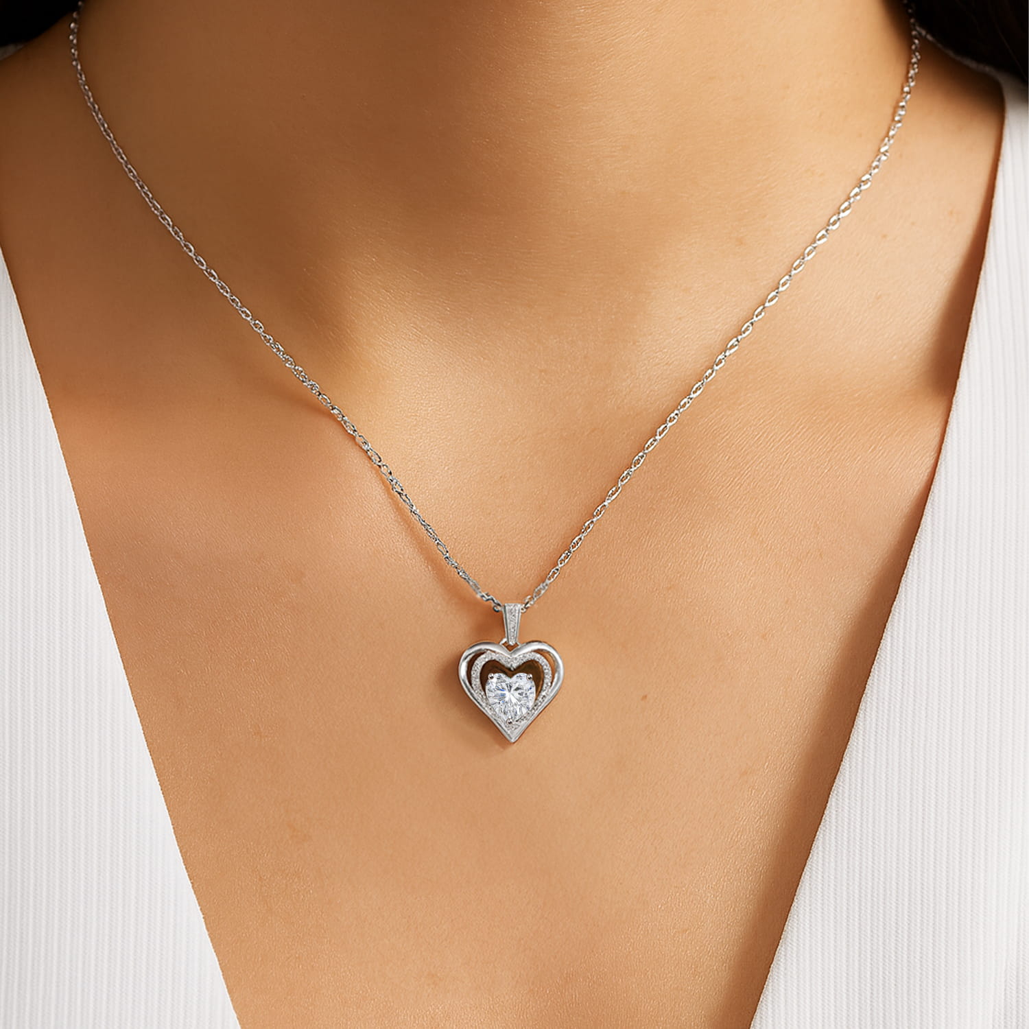 Odkryj wyjątkową biżuterię srebrną, która łączy nowoczesny design z klasyczną formą. Naszyjnik w kształcie serca to propozycja stworzona z myślą o kobietach ceniących wyrafinowaną elegancję i ponadczasowy urok. Centralny element zdobiony lśniącym kryształem o szlifie serca został otoczony drobnymi, misternie osadzonymi cyrkoniami, które pięknie rozpraszają światło, tworząc efekt subtelnego blasku przy każdym ruchu.