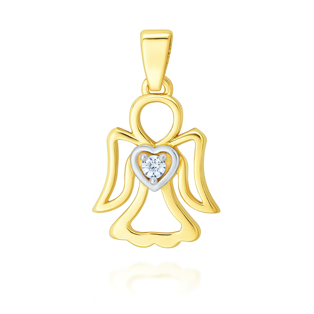 Złota Zawieszka Aniołek z Cyrkonią w Serduszku Próba 585