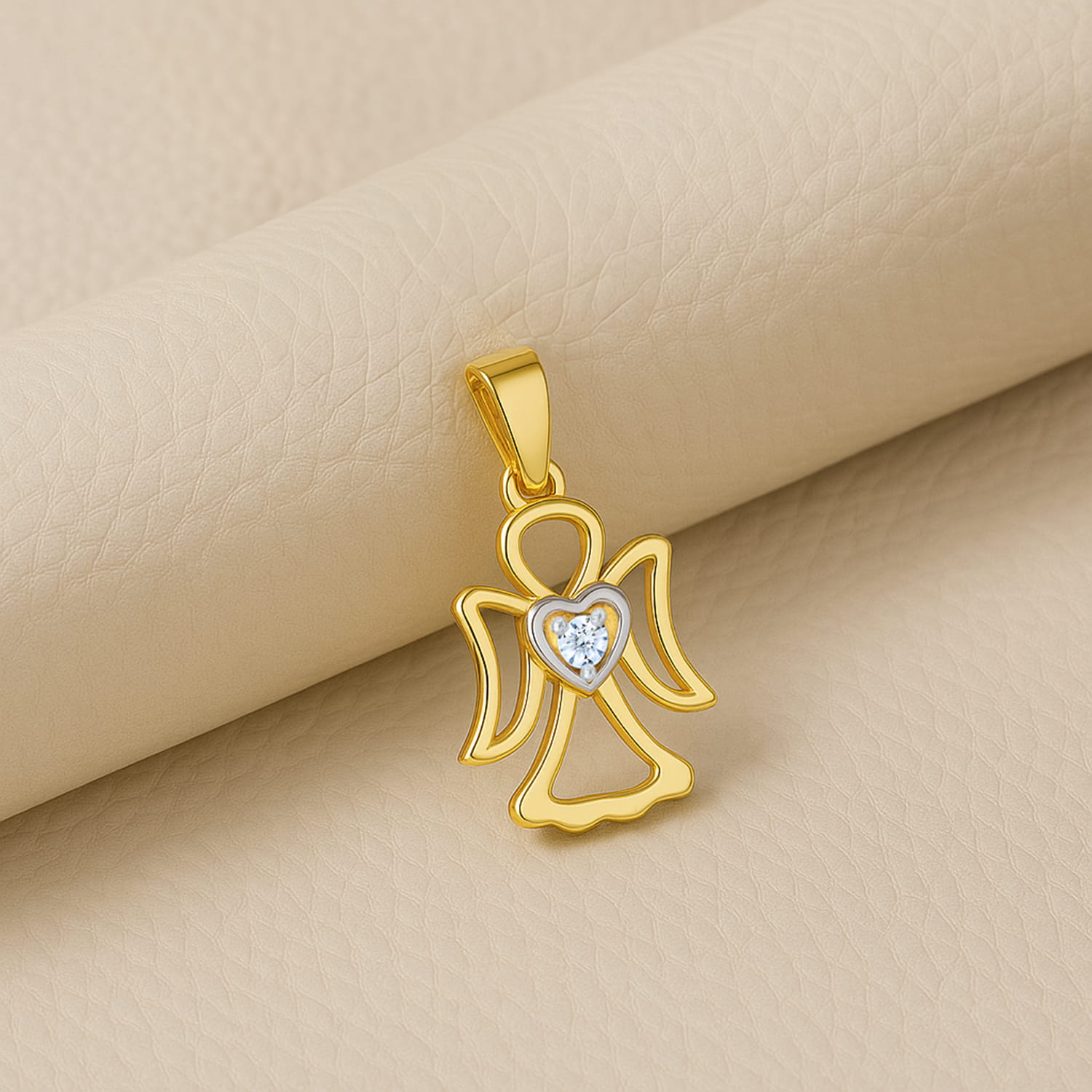 Precyzyjnie opracowana forma aniołka podkreśla staranność wykonania i sprawia, że zawieszka prezentuje się lekko i elegancko. Złoto próby 585 gwarantuje trwałość oraz ponadczasowy wygląd, a zestawienie klasycznej barwy złota z błyszczącą cyrkonią w serduszku tworzy harmonijną i stylową kompozycję. To biżuteria, która świetnie współgra zarówno z subtelnym łańcuszkiem, jak i z bardziej wyrazistymi dodatkami.